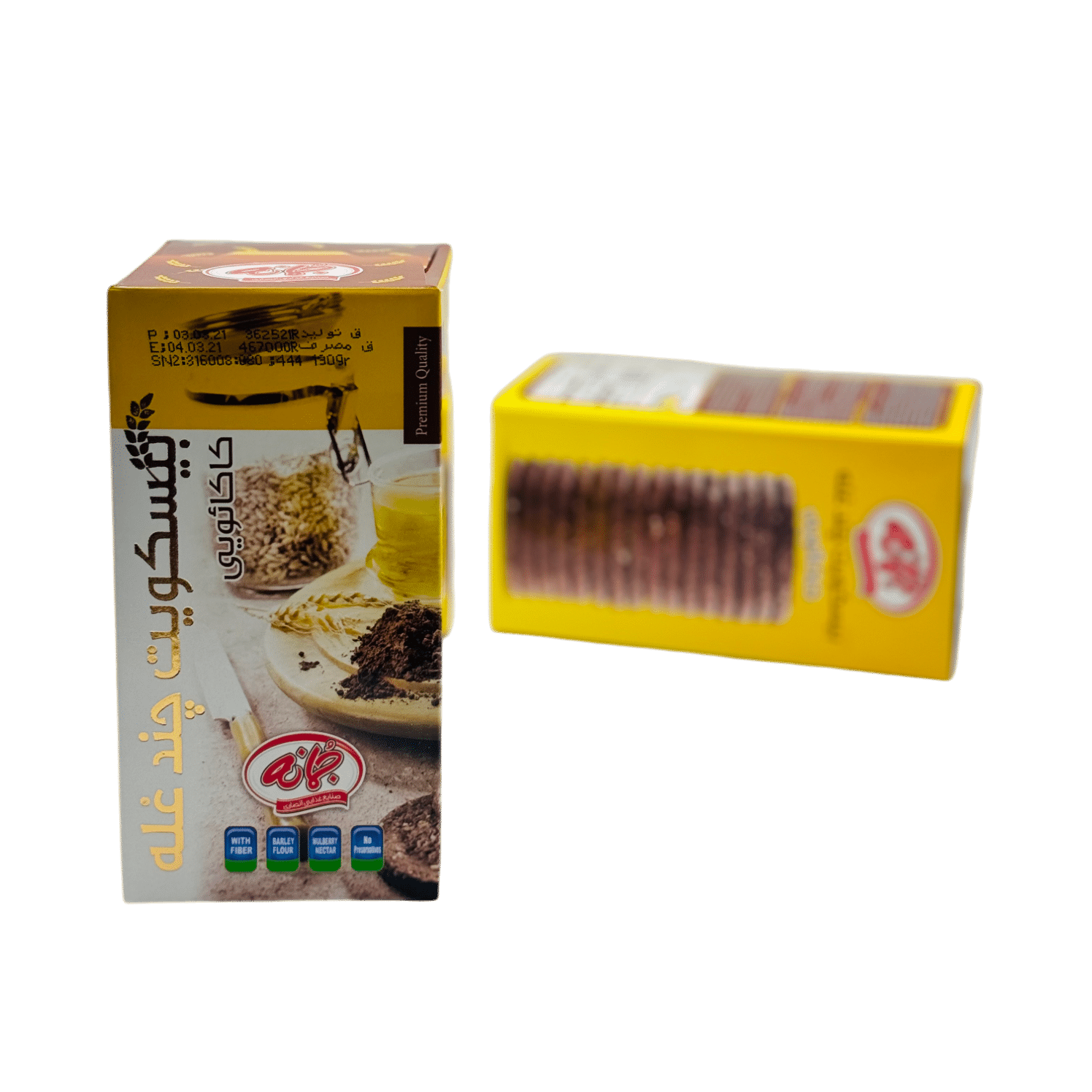 بیسکوییت چند غله جمانه کاکائویی حاوی فیبر طبیعی