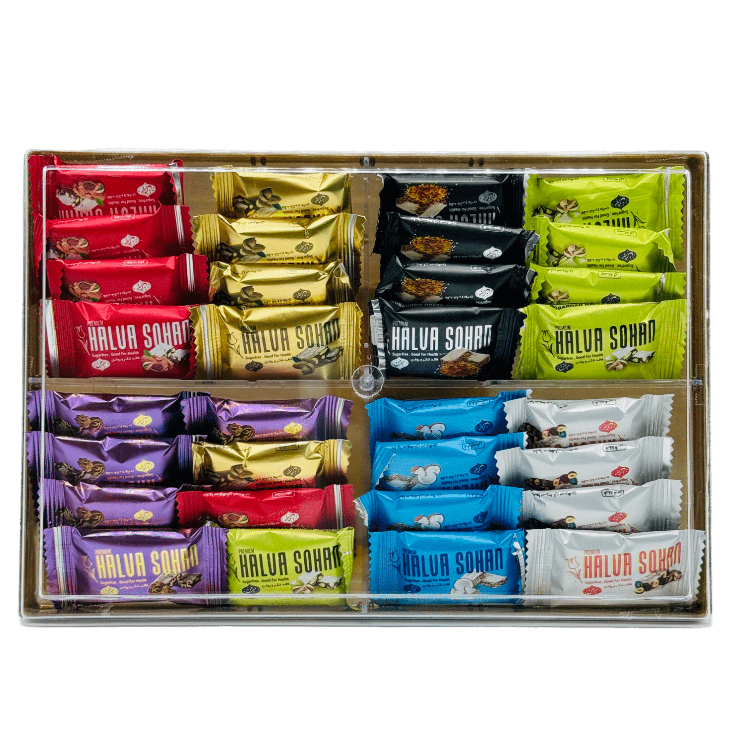 حلوا سوهان مخلوط با طعم های متفاوت بدون شکر،تهیه شده از جوانه گندم و شیره انگور