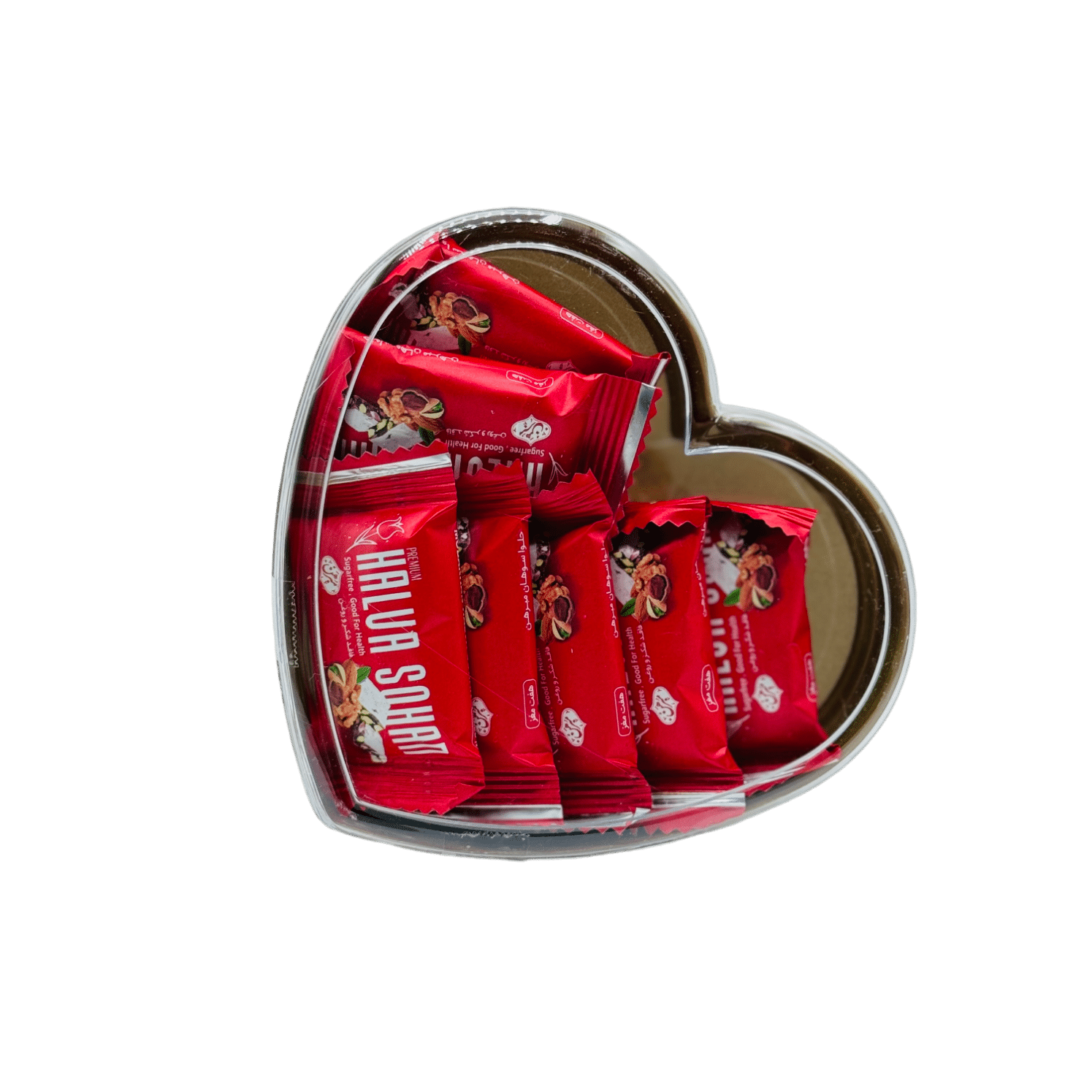 حلوا سوهان هفت مغز کوچک بسته بندی قلبی شکل