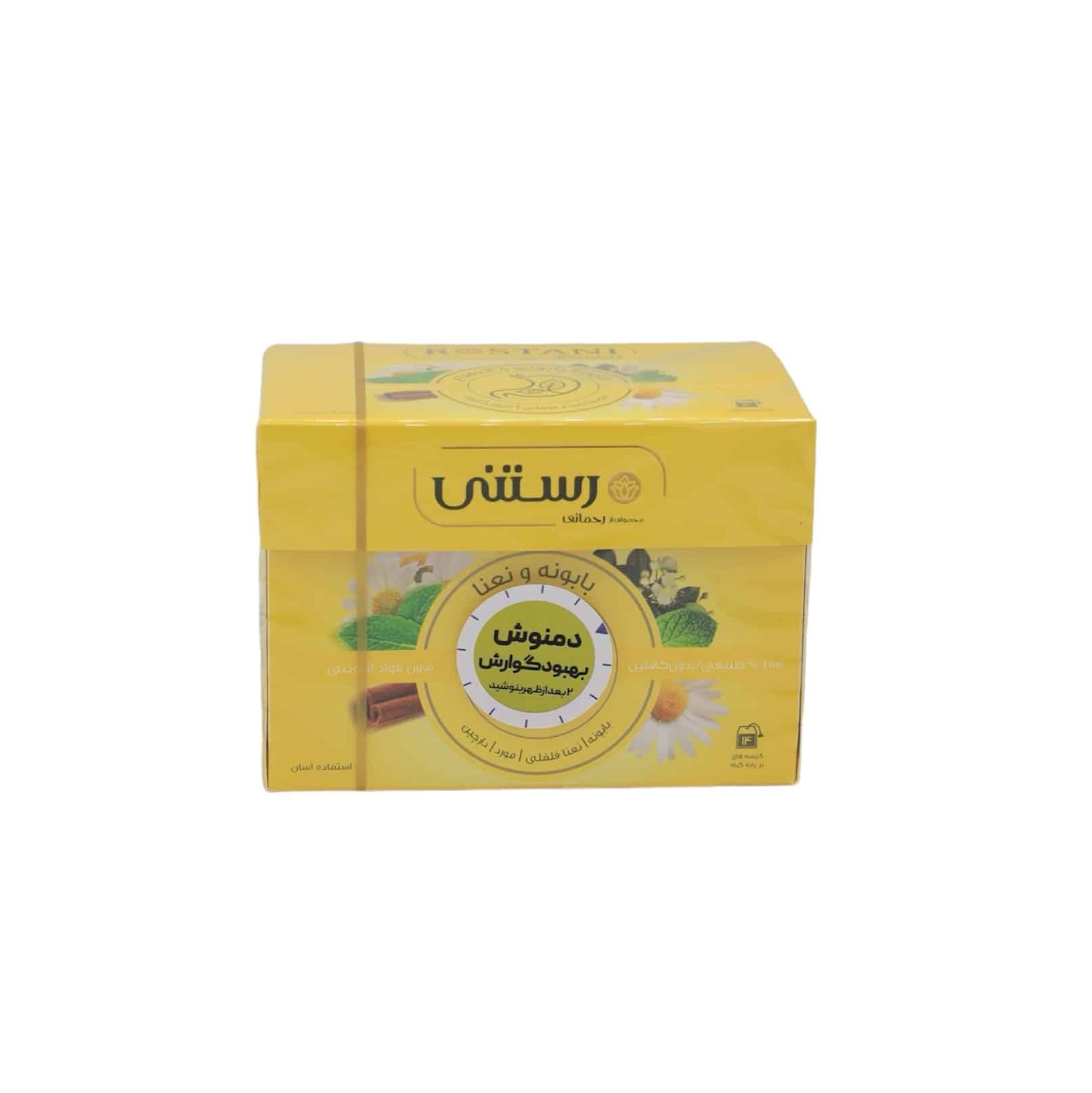 دمنوش بهبود گوارش : حاوی بابونه، نعنا فلفلی، مورد، دارچین
