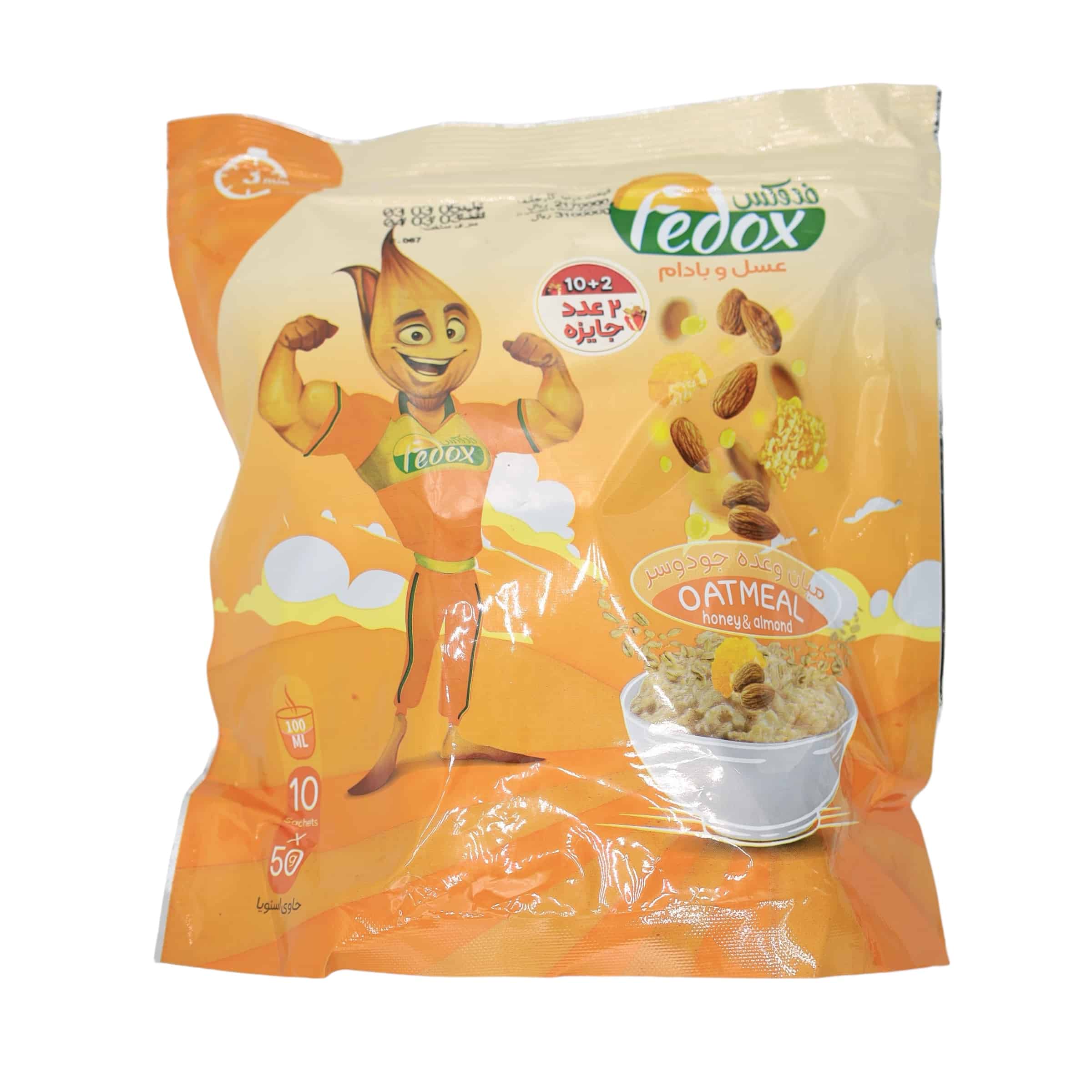 ترکیبات : پرک فوری جو دو سر، پودر شیر اسکیم، استویا، پودر عسل و بادام