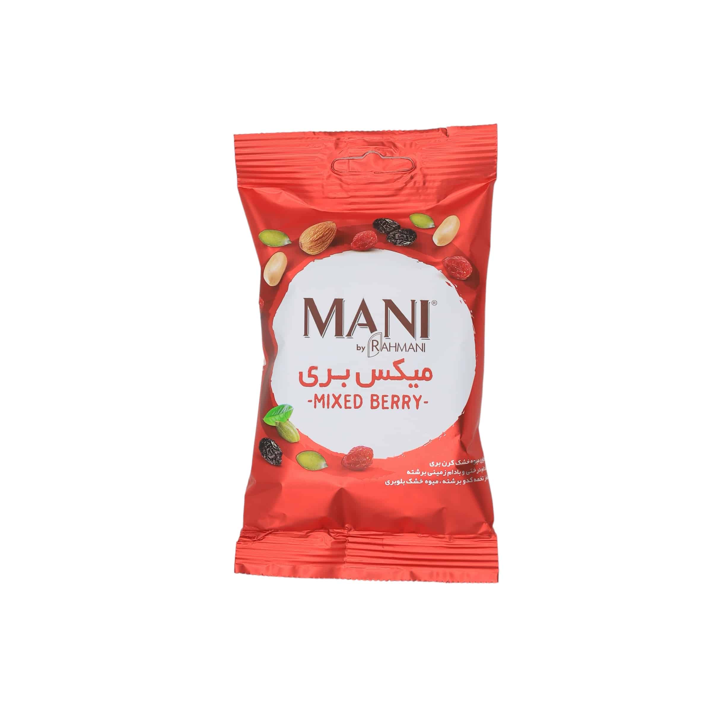 حاوی میوه خشک کرن بری، بادام درختی و بادام زمینی برشته، مغز تخمه کدو برشته، میوه خشک بلوبری